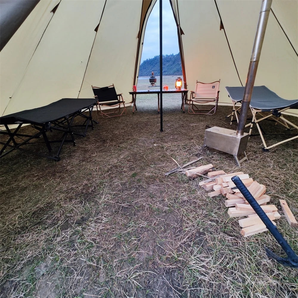 Marre de payer des fortunes en cartouches de gaz pour vous chauffer ? Cette tente tipi étanche révolutionne votre budget camping ! Avec un simple poêle à bois, vous chauffez gratuitement en utilisant le bois mort trouvé sur place.